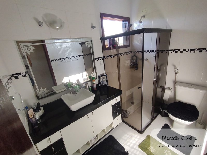 1 Banheiro social completo amplo com armário e base da pia em vidro;